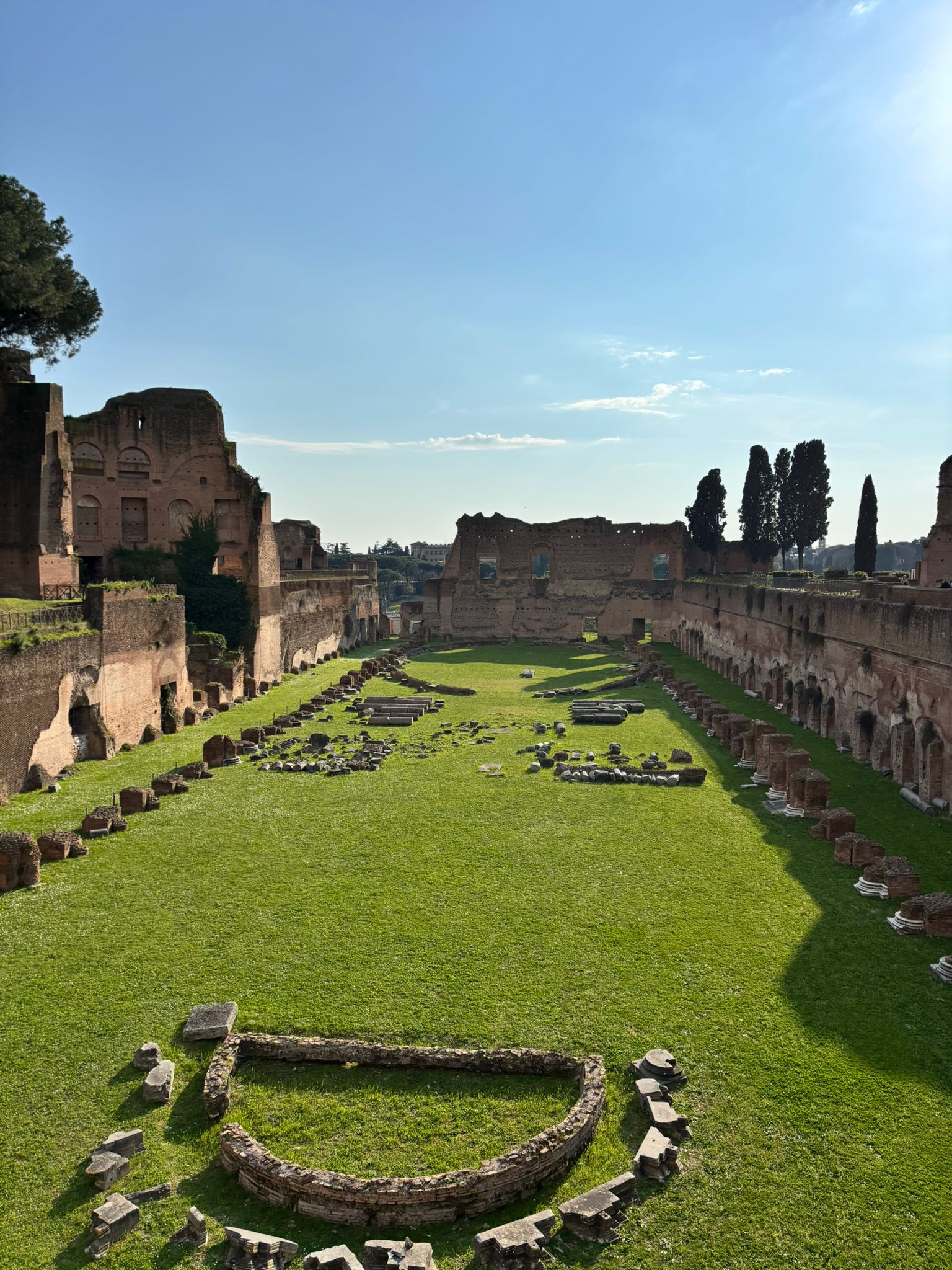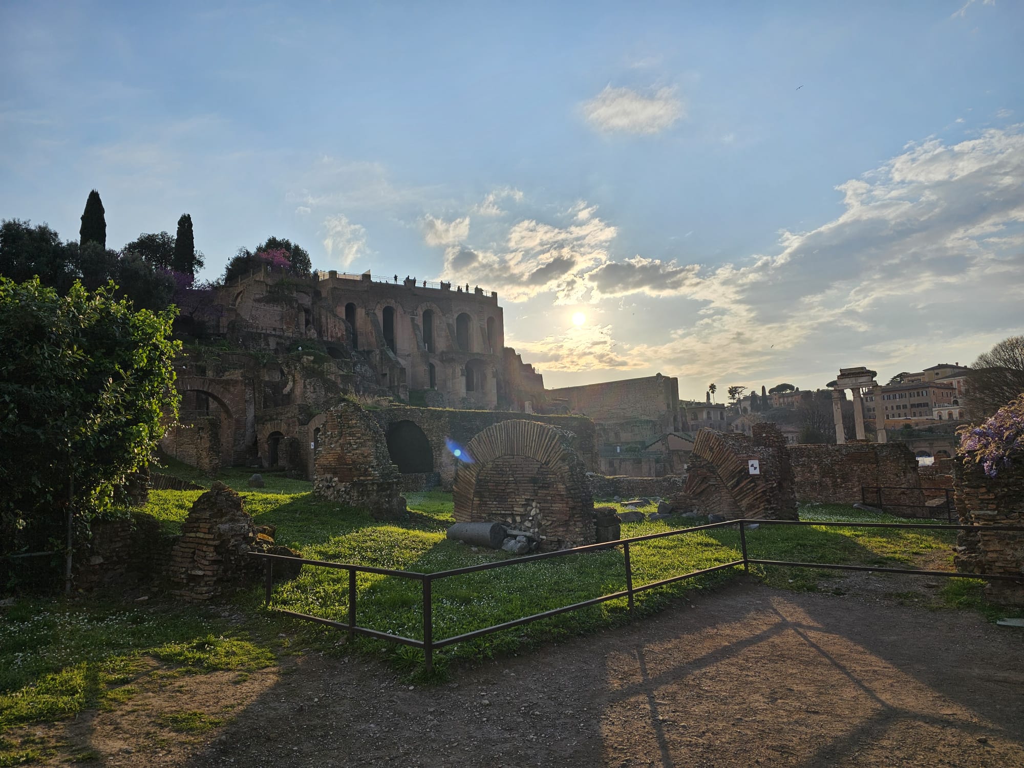 Le Mont Palatin, l'arc de Constantin et le Colisée hier avant une bonne nuit de repos. Aujourd'hui, visite d'Osti et de la villa Adriana...